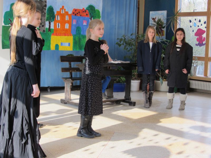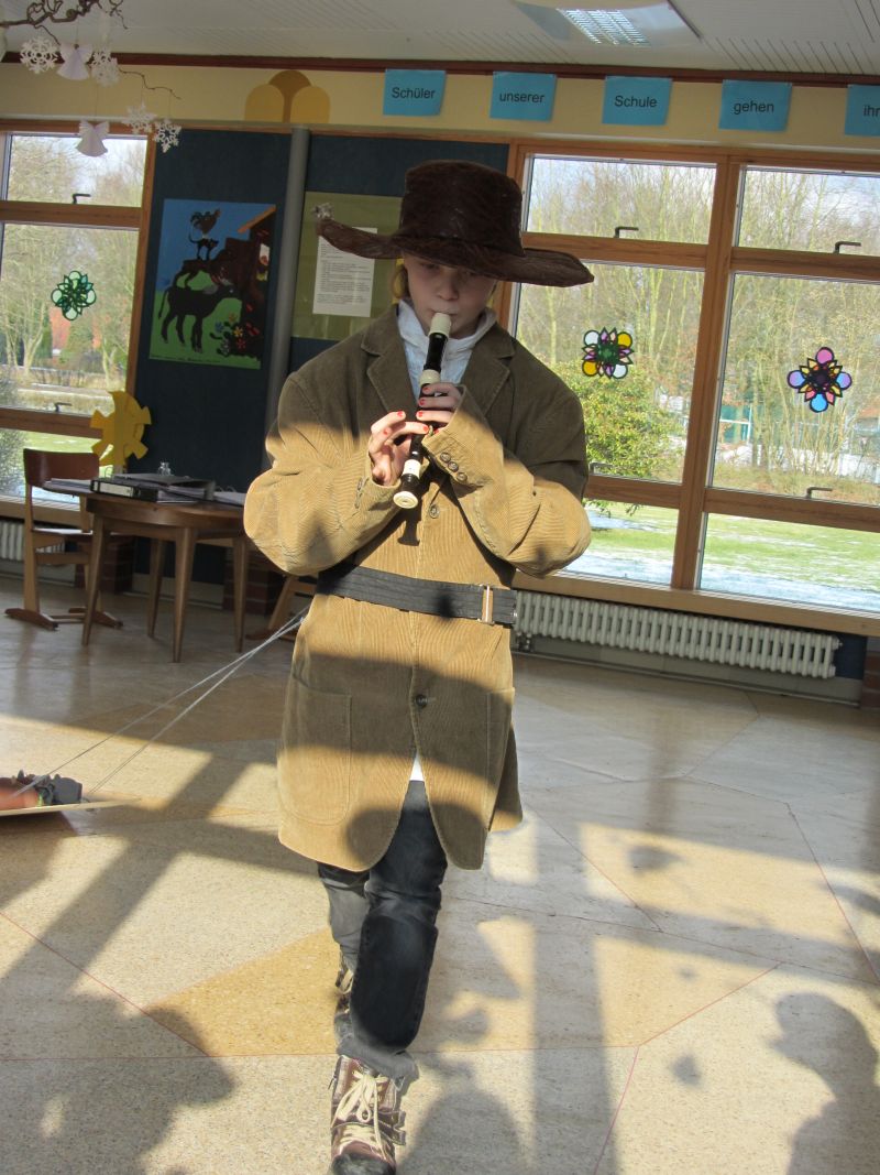 Die Theater-AG führte unter Leitung von Frau Schüler das Theaterstück " Der Rattenfänger von Hameln" vor der gesamten Schülerschar unter großem Applaus vor.